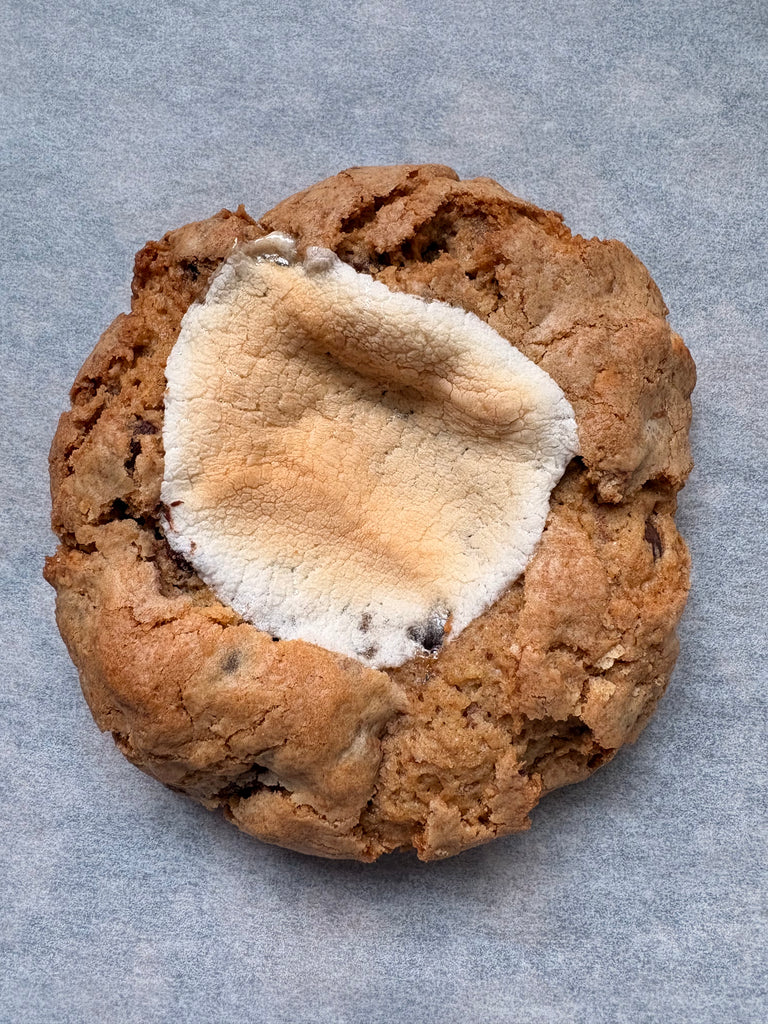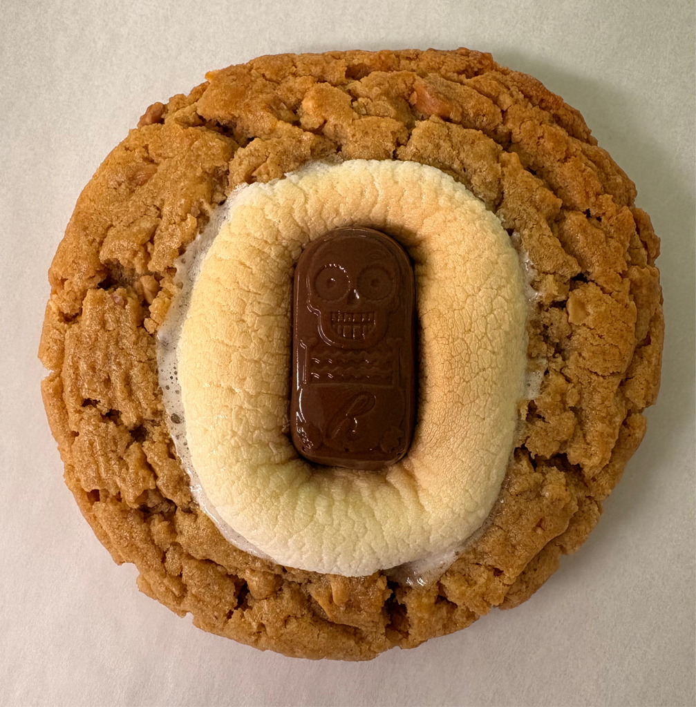 Feel like a kid again with that nostalgia of Peanut Butter and Marshmallow, now all in a cookie! Peanut Butter Cookie with a Marshmallow center.